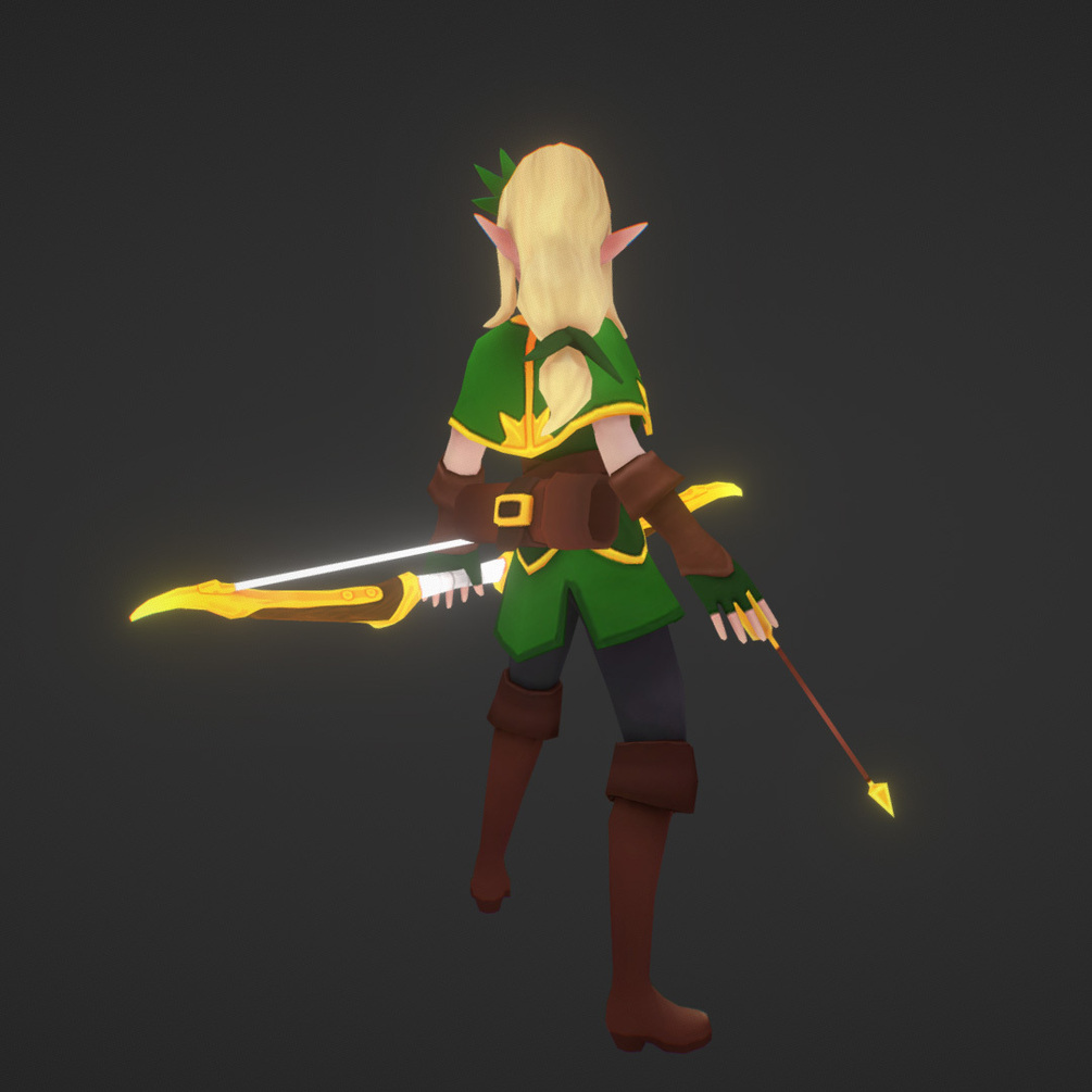 This package contains the Elf Archer character and weapon models (.fbx) + diffuse textures (.png). Note that the character is only provided in a static t-pose and is not rigged.