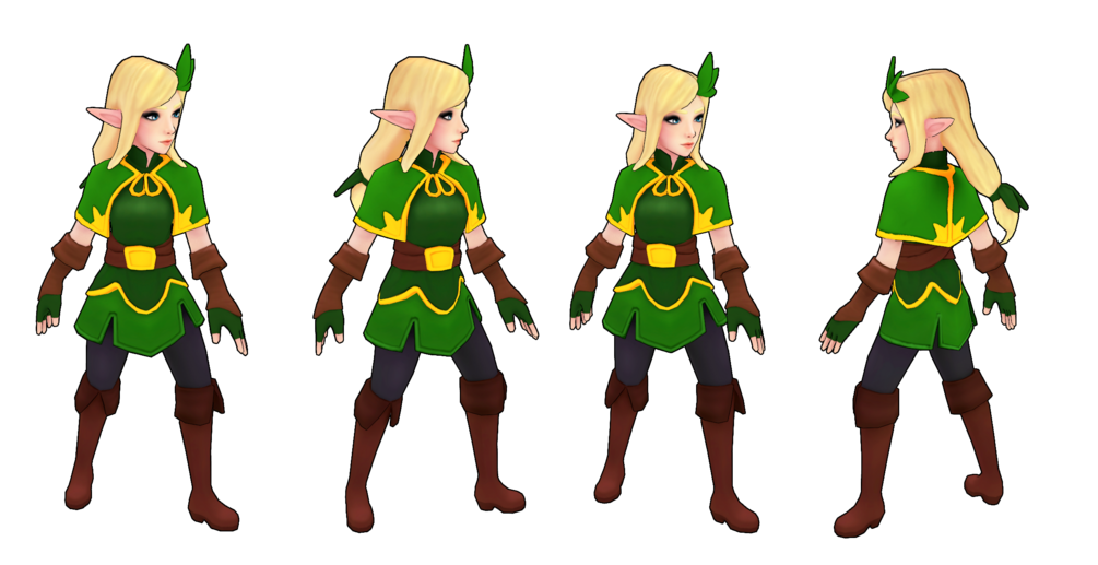 This package contains the Elf Archer character and weapon models (.fbx) + diffuse textures (.png). Note that the character is only provided in a static t-pose and is not rigged.